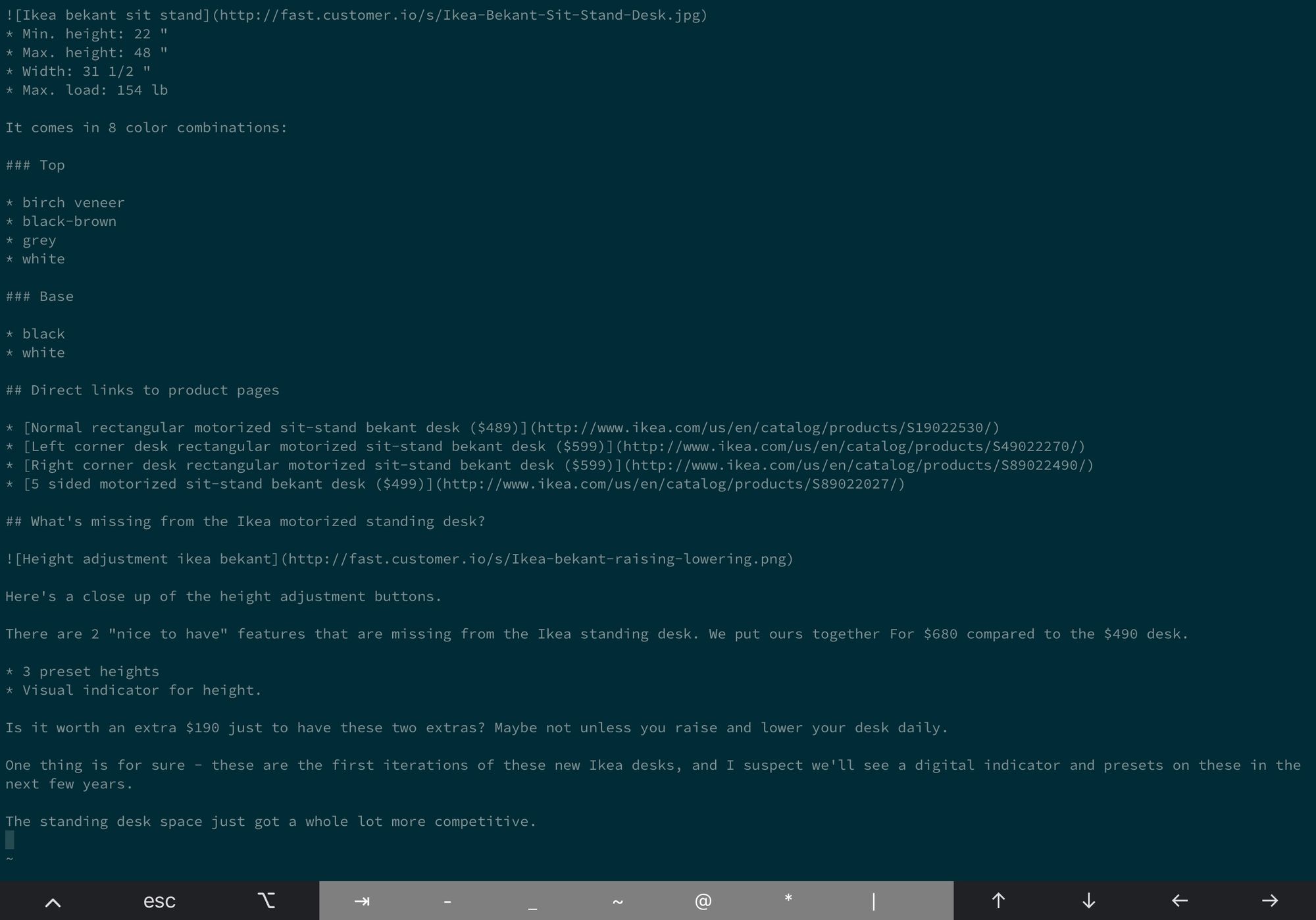 - SSH in to a remote server with Blink and tappity tap your blogpost out in Vim.