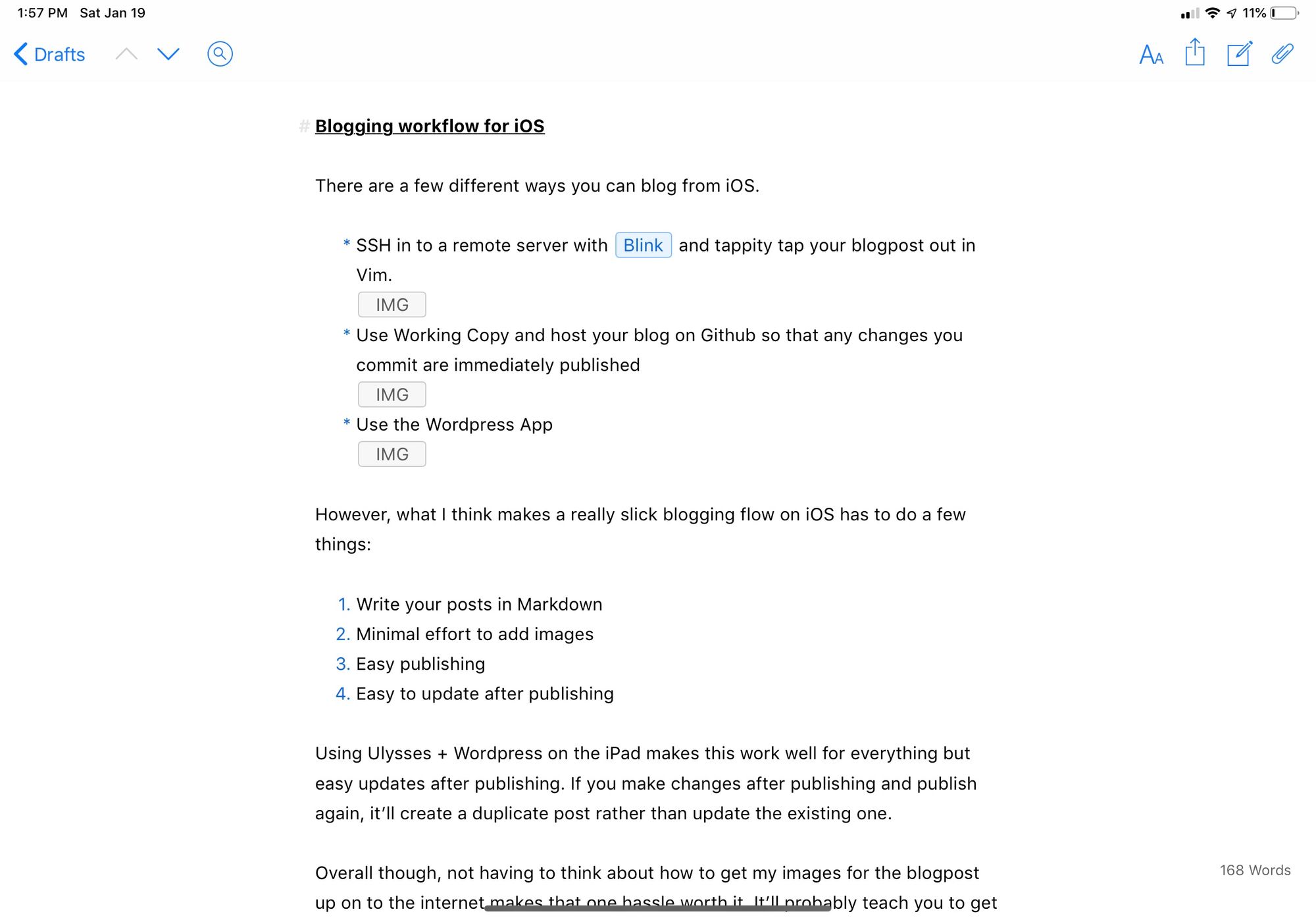 Blogging workflow for iPadOS